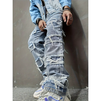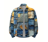 Nueva llegada de la camisa de mezclilla de retazos para hombre, estilo callejero de moda con diseño desgastado, ideal para ocasiones casuales y hip-hop