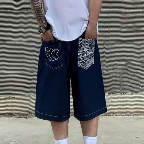 Pantalones cortos de mezclilla para hombre Pantalones vaqueros holgados para hombre Pantalones cortos Y2K Streetwear con logotipo bordado