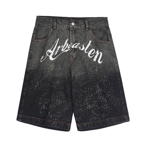 Pantalones cortos con logotipo bordado personalizado para hombre, pantalones cortos de mezclilla con pintura de alta calidad para hombre, pantalones vaqueros de moda de estilo callejero holgados rectos para hombre